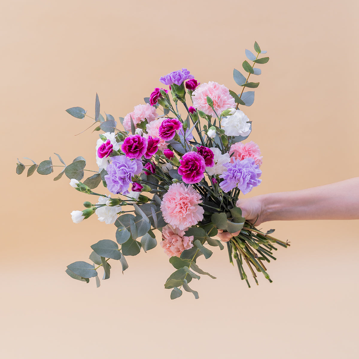 Nos comprometemos a que tu ramo llegue en perfecto estado. Por eso, envolvemos los tallos en en un empapador para hidratar los tallos y en papel craft para protegerlo durante el viaje. Tu ramo te llegará en una caja de cartón reciclado con una bolsita de nutrientes para que tus flores duren más.