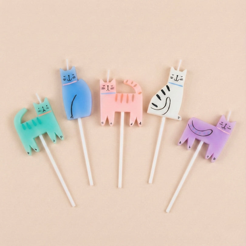 😸 Velas de gatinho Meri Meri para aniversários cheios de magia felina. Adoráveis, divertidas e perfeitas para iluminar a celebração com estilo. Que as velas sejam apagadas e que a festa comece!