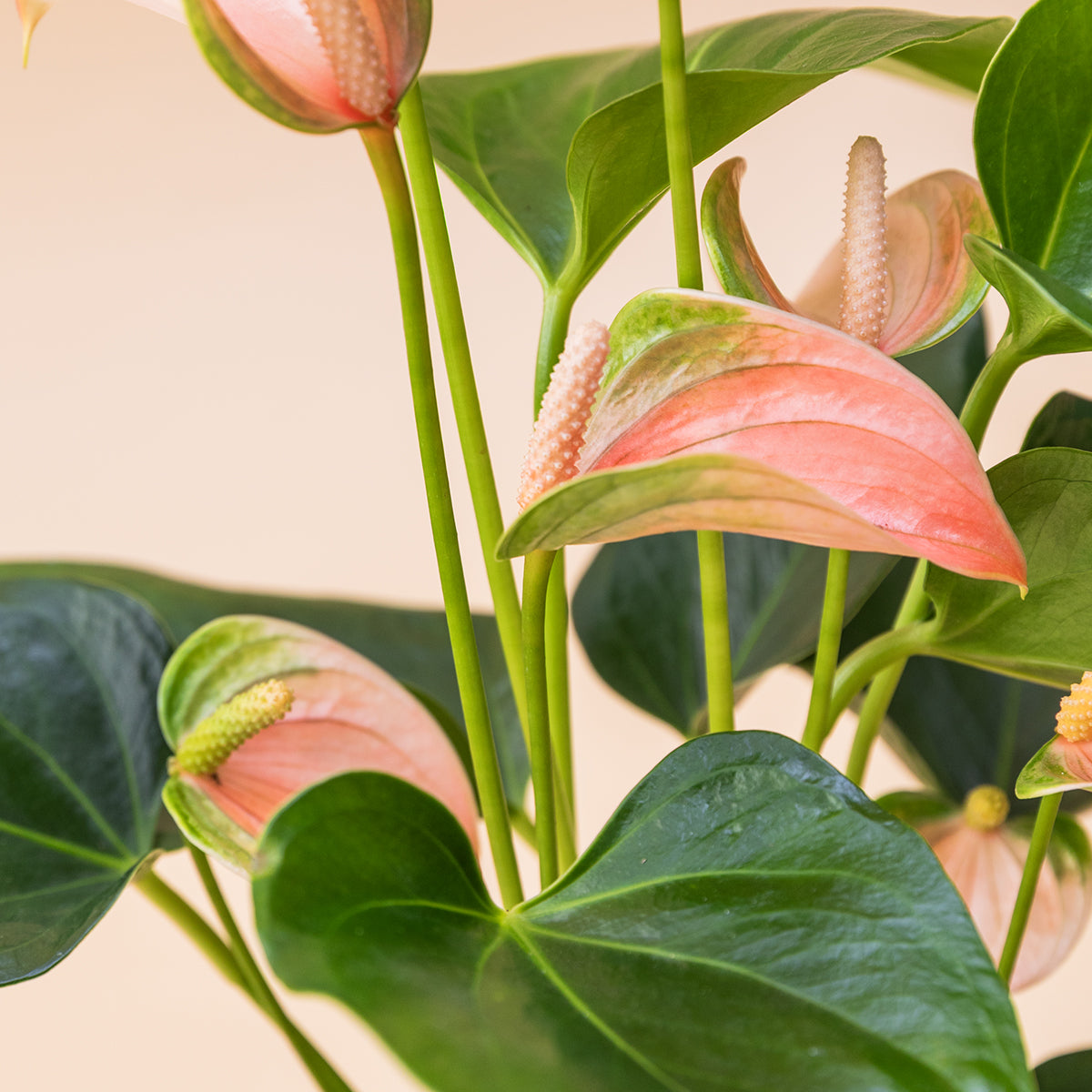 Verde intenso, flores rosa suaves e aquela sensação de "isto vai alegrar a casa" no momento em que se vê. O antúrio é um daqueles presentes que nunca falha: bonito, resistente e muito fácil de cuidar. É o tipo de planta que suporta o desgaste diário e continua bonita sem exigir muito em troca.